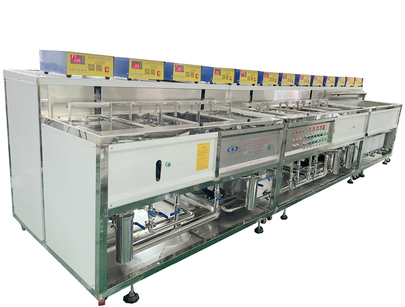 高硼硅玻璃管超聲波清洗機VGT-1307FS 高硼硅玻璃管超聲波清洗機共有13個功能槽,配置有循環過濾系統、自動恒溫系統、拋動系統、超聲波清洗系統、溢流系統等。