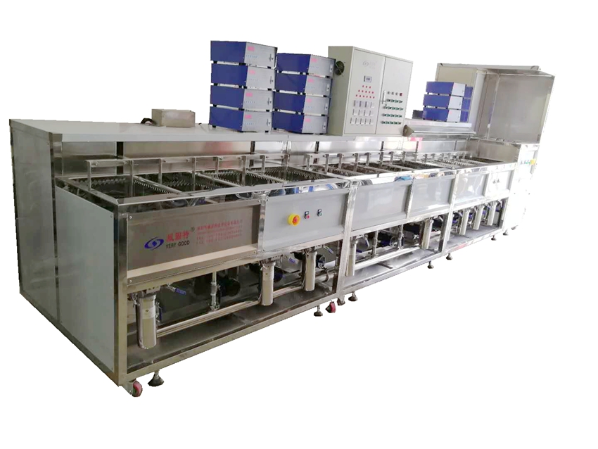 設(shè)備共有12個功能槽,配置有拋動系統(tǒng)、循環(huán)過濾系統(tǒng)、自動恒溫系統(tǒng)、超聲波清洗系統(tǒng)、定時系統(tǒng)、噴淋系統(tǒng)、慢拉脫水系統(tǒng)、熱風烘干系統(tǒng)等。