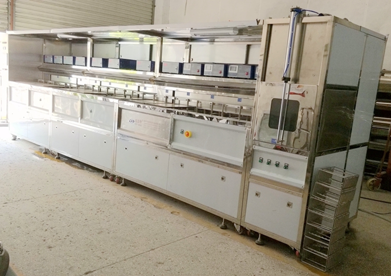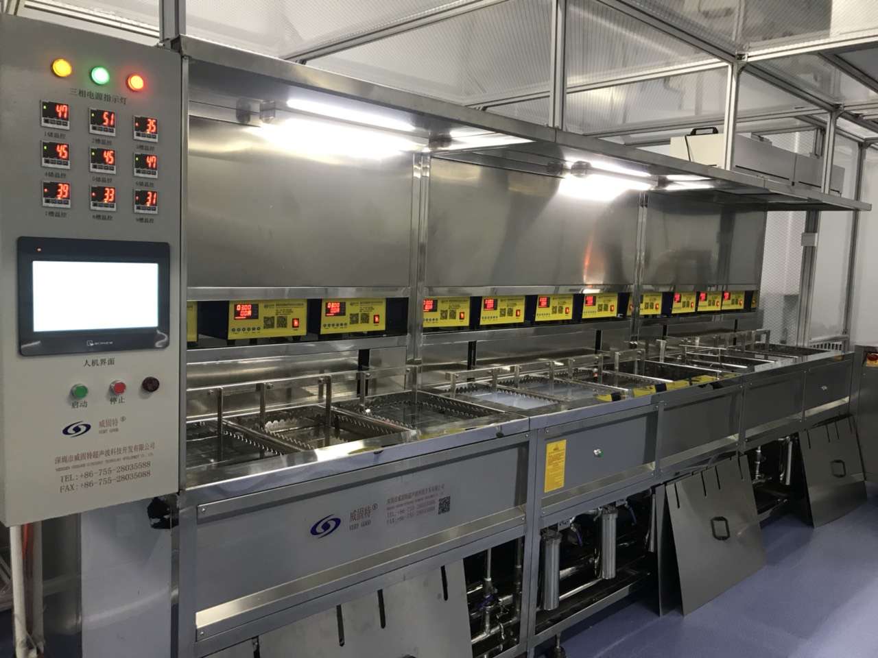 AR光波導電光學模組超聲波清洗機深圳威固特VGT-1407FH為光學玻璃超聲波清洗機,設備共有14個功能槽,配置有前處理系統、循環過濾系統、預熱箱系統、自動恒溫系統、拋動系統、超聲波清洗系統、抽風裝置等。