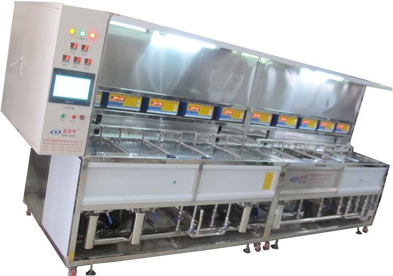 2020年第一天深圳威固特祝您元旦新年快樂-VGT-1107FTA棱鏡模組超聲波清洗機威固特VGT-1107FTA光學超聲波清洗機,共有11個功能槽,配置有循環(huán)過濾系統(tǒng)、浸泡系統(tǒng)、自動恒溫系統(tǒng)、溢流系統(tǒng)、拋動系統(tǒng)、超聲波清洗系統(tǒng)、慢拉脫水系統(tǒng)、熱風烘干系統(tǒng)等。
