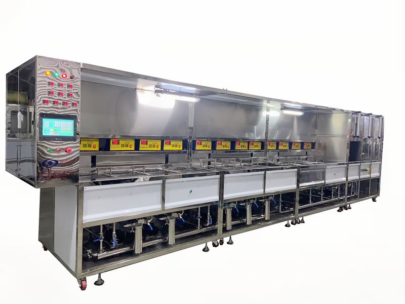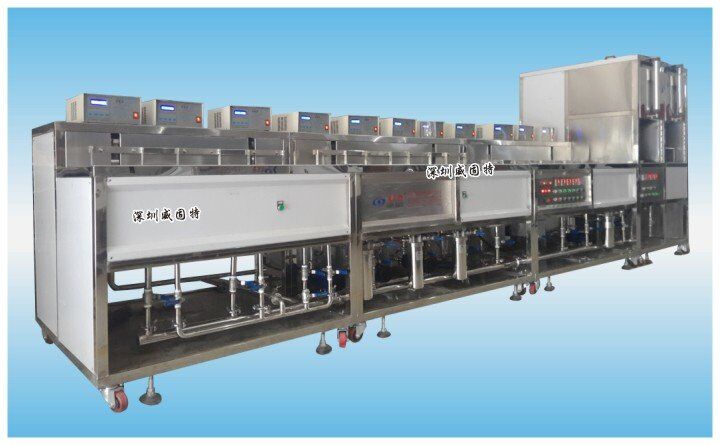 威固特VGT-1309FS激光保護(hù)鏡片超聲波清洗機(jī)設(shè)備采用13工位槽體布局,涵蓋清洗、漂洗、慢拉脫水及離心甩干全流程。模塊化結(jié)構(gòu)支持根據(jù)工藝需求自由拆分組合,例如針對激光鏡片的鍍膜前清洗,可配置水基清洗劑槽與高純水漂洗槽,有效剝離粉塵、拋光粉及有機(jī)殘留物。
