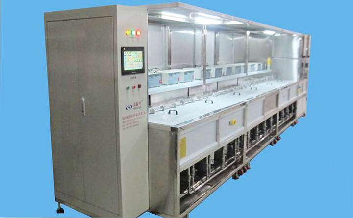 針對霍爾元件引線框架的清洗需求,該設備集成了超聲波清洗、循環過濾、自動恒溫、拋動系統、慢拉脫水、熱風烘干以及全自動機械臂傳輸系統,可實現從上料、多級清洗、漂洗、干燥到下料的全自動無人化生產。